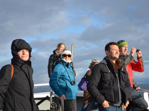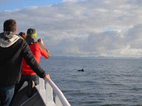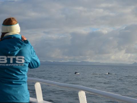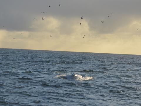 Report from Hafsúlan: On this beautiful morning we left the harbour of Reykjavik in an optimistic mood. After the last stormy days the sea took a while to calm down, so we still had a little bit of swell. As we were traveling through the Faxaflói bay looking for cetaceans the few of the Icelandic scenery was very beautiful. It didn't take long until we spotted our first animal, which was a white- beaked dolphin. This animals was in a pod of at least 5 different individuals. During the rest of our trip we encountered two more pods as well as several minke whales. We tried to get as good a look as possible of these marine mammals without disturbing them. Unfortunately the minke whales seemed a bit elusive today. This was definitely compensated by the friendly behavior of the large amount of dolphins that we encountered in the bay, even on our way back to the harbour. Estimating around 3 minke whales and 3 pods of white- beaked dolphins with around 15 individuals.