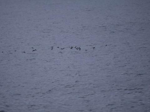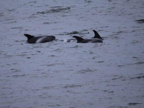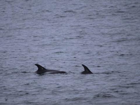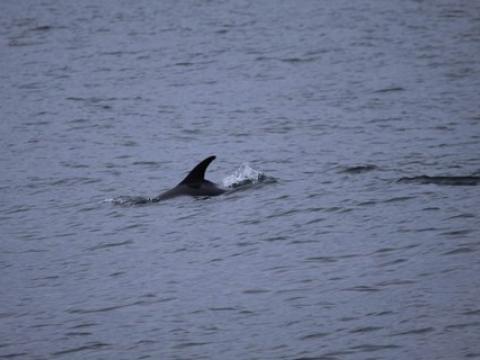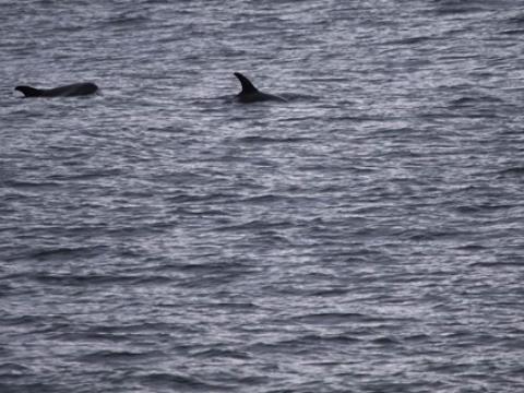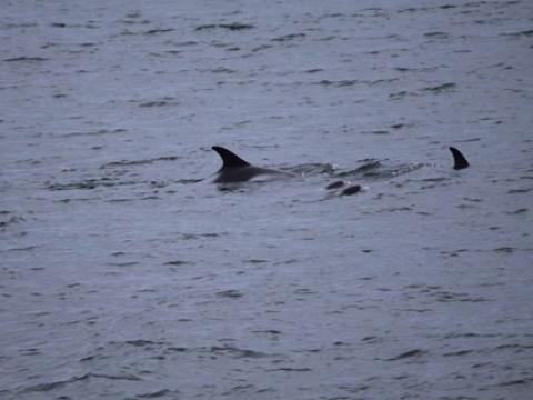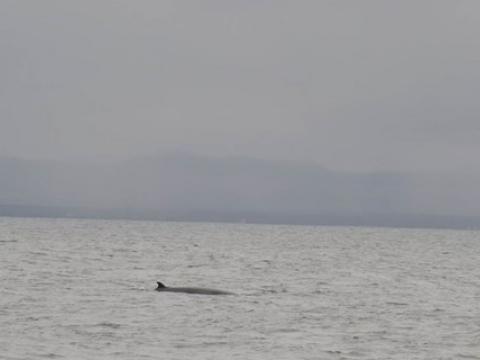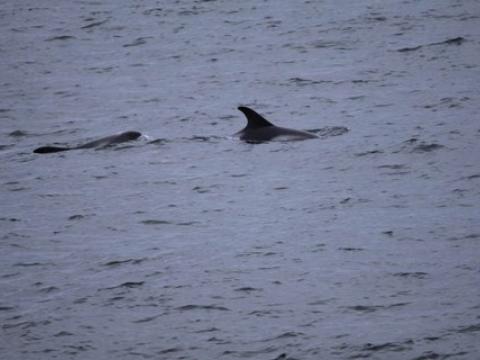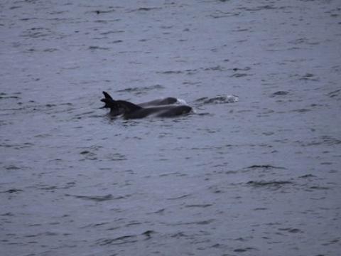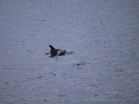 Report from Elding: There was no predominant wind direction and the water surface was smooth but undulated as there was a long swell. The water was in light colors of grey that there was a good contrast to spot any dark body of cetaceans. Like this it was possible to spot 3 times harbour porpoises. Each time there seemed to be only one coming several times to the water surface as he traveled along. As we have been searching for quite a while in one area it could have been that we crossed the same one more then once. Towards the end we finally found a minke whale which was travelling calmly and steadily in one direction and as he surfaced regularly we could follow it for some time and have good looks at him before we had to turn back towards the harbour.