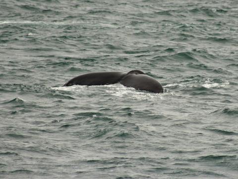 Report from Eldey: The wind had calmed down and the sea conditions were better. We decided to head further north, in similar area where the 10 o'clock tour saw the humpbacks. Soon when we got into the area we spotted a blow of a humpback whale! The humpback was rather elusive but we managed to get good looks at it. While watching the humpback we received word from another boat about a very active humpback. While heading there we spotted a minke whale and a pod of 5 harbour porpoises. The porpoises traveled right past us and may have gone under the boat. There were two humpbacks close to the boats and one of them breached out of the water! Right before we left them, one of them surfaced so close to the boat it was within 10 meters of the boat! What an incredible way to end this great tour!