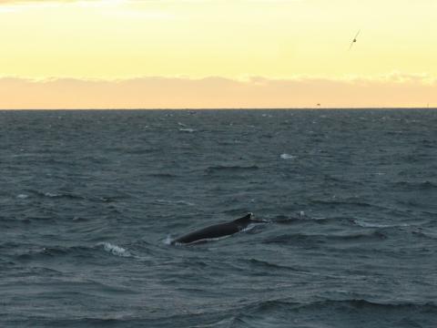 Report from Eldey: This tour had all the romance You'd expect from midnight whale watching. On our way towards the sunset we encountered the four local cetaceans most commonly seen in Faxafloi: A few harbour porpoises, two pods of white beaked dolphins around 5 individuals each, two minke whales and even a humpback whale crossed our path. But the brightest star of this nature's show tonight for sure was the sun. After wind and weather shooked the Eldey on our way out into the bay, sailing back home was a pleasure due to the sun, providing us with the most beautiful light falling in our backs while everybody was enjoying Simon our musician's joyful sounds.