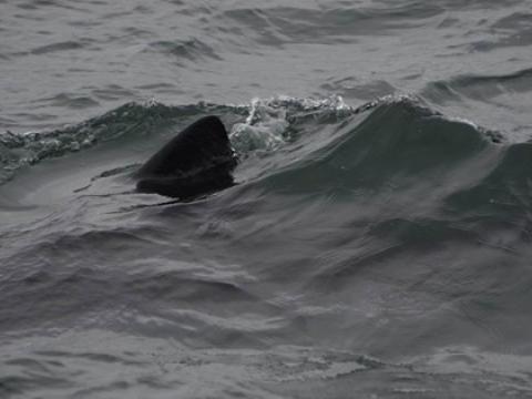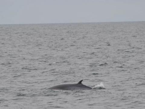 Tour at 17:00Report from Hafsúlan: The weather had gotten beautiful as we headed out in our last tour for today. only after 30 minutes we found a pod of 4-6 White-beaked Dolphins with a young (baby dolphin ) with them. We got a good look at them but then noticed that one of the dolphins was trying to trick us away by swimming under the boat while the others swam fast away, so we decided to search for something else so we wouldn't disturb them to much. just as we sailed away we saw a Minke Whale surfacing a little further away and then noticed at least 3 more Minke's in the area. They surfaced on at a time and some times very close to the boat. as we were watching them we saw a strange dorsal fin, it was the Basking shark again! And now we got an even better look at him as he swam with his mouth open and we could see him perfectly under the surface. While we were watching the shark we could see Minke's surfacing around us. All of a sudden we noticed this very dark long line in the ocean.. we headed closer and then saw that it was a huge school of the fish Mackarel. The ocean was literally boiling from the movement from this large group and they covered the sea all around us. This was a perfect ending to an amazing an unusual tour. This day couldn't have been better!- Freydís Ósk HjörvarsdóttirTour at 14:00