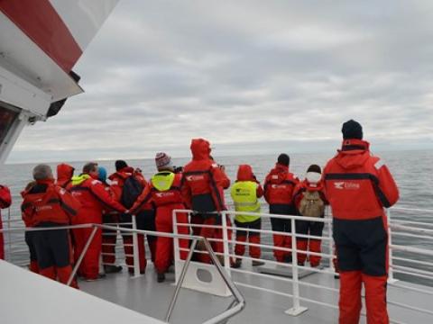 Report from Elding: In the morning, the sky was quite cloudy and myst was covering Reykjavik's harbour. However, the wind was calm and as we headed further out the sun warmed our faces so that we ended up having quite a nice weather. It did not take us long until we spotted a Minke Whale. It was quite easy to spot since this minke surprised us by lifting more than one third of its body out of the water. And then, even a second individual showed up doing exactly the same thing. They were quite energetic and we were very happy to see them surfacing and breaching several times. In total we must have seen about three to five Minke Whales this morning. The energetic appearance of the Minke Whales made thismorning's tour a wonderful time out at sea. Eventually, the cherry on the cake was a group of Atlantic Puffins we saw on the island Engey, which we visited being curious whether the charismatic birds were still around that late in the season - glad to see you once more you sweet little puffins! :).