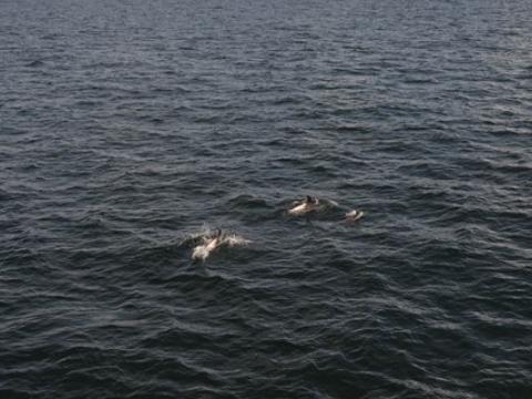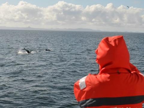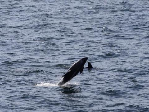 Report from Hafsúlan: Once again the weather was perfect and hadn't changed much from the morning, except maybe a stronger breeze. We sailed out to the area we were this morning to find hundreds of seabirds, everywhere arctic terns were skimming the surface, gannets were plunge diving, skuas and seagulls stealing fish from other birds it was a birds enthusiasts paradise. For the cetacean enthusiasts we also had a great encounter from a pod of 5-7 white-beaked dolphins, feeding under the birds. They were also fantastic surfacing many times and close to the boat too. It's always wonderful to see them traveling just under the waters surface. After a while with the dolphins we went searching for a Minke Whale and just as soon as we told our passengers that, one was spotted about 800 meters away. By the end of the encounter the whale was surfacing happily 50m and sometimes less from us. On the way home we spotted another minke whale and another small pod of 3-5 dolphins. Once again a wonderful afternoon with lots too see. Even a small pod of 3-4 harbour porpoises were spotted on the way out and another 2-3 individuals on the way home. Fantastic!