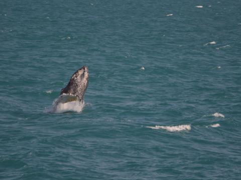 Report from Elding: In the afternoon we decided to head straight to the humpback whale that we encountered in the morning with winds even stronger than in the morning. On the way we tried to spot other animals, which was harder then usual, since the food seemed to have decreased in the bay. Even though we managed to spot 3 harbour porpoises traveling towards the harbour. Unfortunately we had no time to stop, but still most passengers managed to spot the very small marine mammals. We finally arrived in the area with the humpback whale from the morning tour. It seemed to have stopped resting, instead was milling. We enjoyed watching it until we decided to go back to the harbour. Just at that point it was breaching, only 20 meters away from the boat. After a second breach on the left side of the boat we had to leave it and go back home, with smiling faces all around the boat.