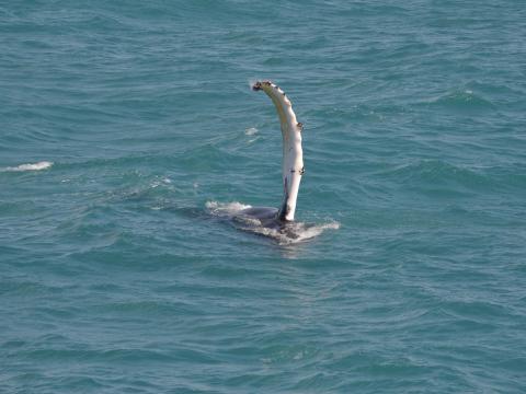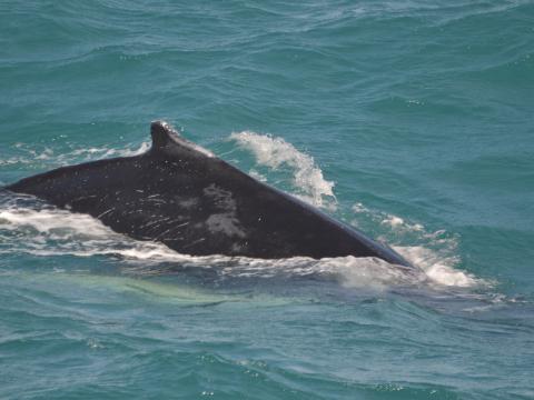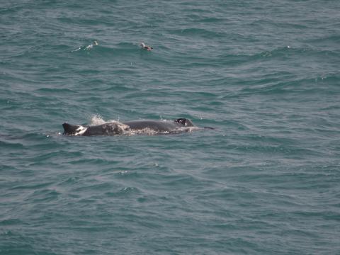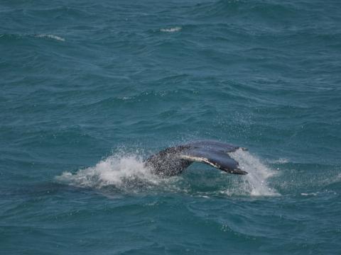 Report from Elding: On the morning tour we decided to start heading north in search of cetaceans. Unfortunately the weather was pretty rough, strong winds and strong swell with it. After we couldn't find an animal in this direction, we started traveling west, towards the area where we heard rumors about a humpback whale. It took quiet a long time to reach the location, but when we did, we found a juvenile HUMPBACK WHALE. The animal seemed to be resting, which gave us a very long time to enjoy it, and take pictures of this incredible creature. Several times it was going for very short dives where it showed us it's fluke. We stayed as long as possible until we had to head back to the harbour.
