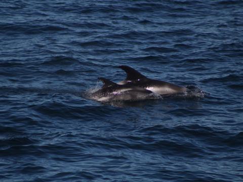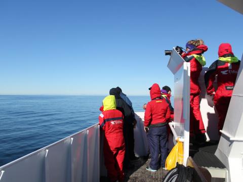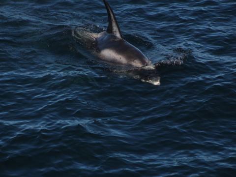 Report from Hafsulan: We left the harbour of Reykjavik under a blue sky and with a slight breeze in our face. Due to the calm sea it was easy to find our first minke whale just after we reached our main sighting area. What a start! The individual surfaced a couple of times around our vessel, most probably feeding on the schooling fish we could see in our fish finder. After we enjoyed this beauty for about 20 minutes, we headed further out to just encounter a small pod of 4-6 white-beaked dolphins a few minutes later. It was challenging to keep up with this pod of dolphins as they alternately slowed down and speeded up, jumped out of the water even, and changed directions quickly. Of course this was very entertaining and everyone got to enjoy these elegant swimmers. On our way back home, we were surprised by another minke whale which showed up a few hundred meters away from us. We decided to stop by and give our passengers the opportunity to see this graceful animal one more time, before we had to sail back to Reykjavik.