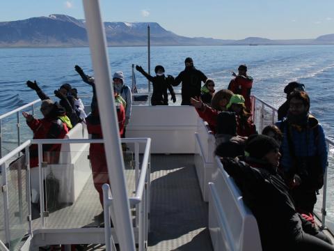 We are sailing out from the Old Harbour in Reykjavik on this beautiful day. Hope you will be able to join us on our search for these magnificent animals in their natural environment.