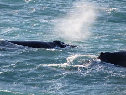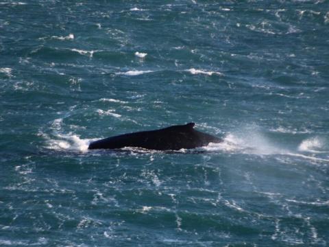Report from Eldey: The weather this afternoon was beautiful. Blue skies and the warmth of the sun being felt when sheltered from the wind. However, once on the water the wind was rather strong and bitterly cold. The ocean was a little bumpy but as we sailed with the small waves this was not an issue. It took an hour until we had our first sighting which turned out to be quite exciting. Many birds were seen feeding and from the waters surface two large blows erupted. The blows were those of the humpback whale. After these two were sighted, many more blows appeared around the boat with as many as 6-8 humpbacks feeding within a kilometre of one another. Two whales breached, displaying their size and strength. We watched the whales for some time before continuing withour trip where we docked at Grindavik. Great tour and many delighted passengers.