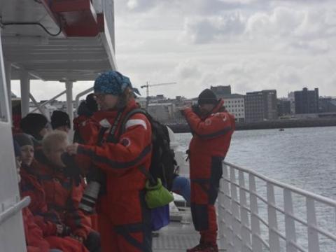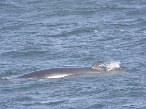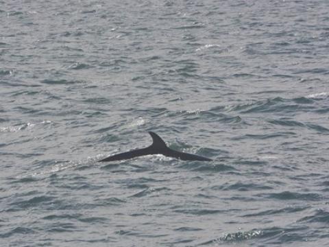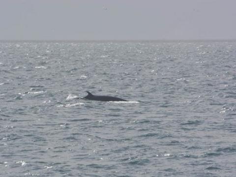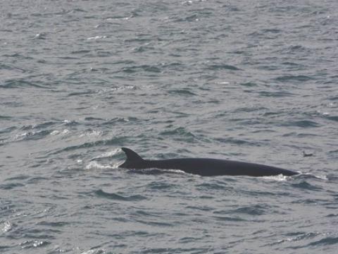 Report from Hafsúlan: Thick layers of grey clouds and light rain accompanied our boat on our way out into the Bay in front of Reykjavik. Soon, however, blue skies and the sun broke though inbetween the clouds. An apparent lack of food in the bay this morning made bird flocks a rare sight, thus giving the captain and crew little to work with to find cetaceans. Nevertheless, 10-20 Harbour Porpoises popped up on either site of the vessel intermittently throughout the tour. Already on our way back, we spotted a Minke Whale surface 40-50m from our boat and surfaced 4 times more. However, the individual, we identified as 'Peanut', took long dives. It seemed rather in a travel than in a whale watching mood. Closer to the harbour 2-3 more Minke Whales showed itself randomly to either side of the vessel.