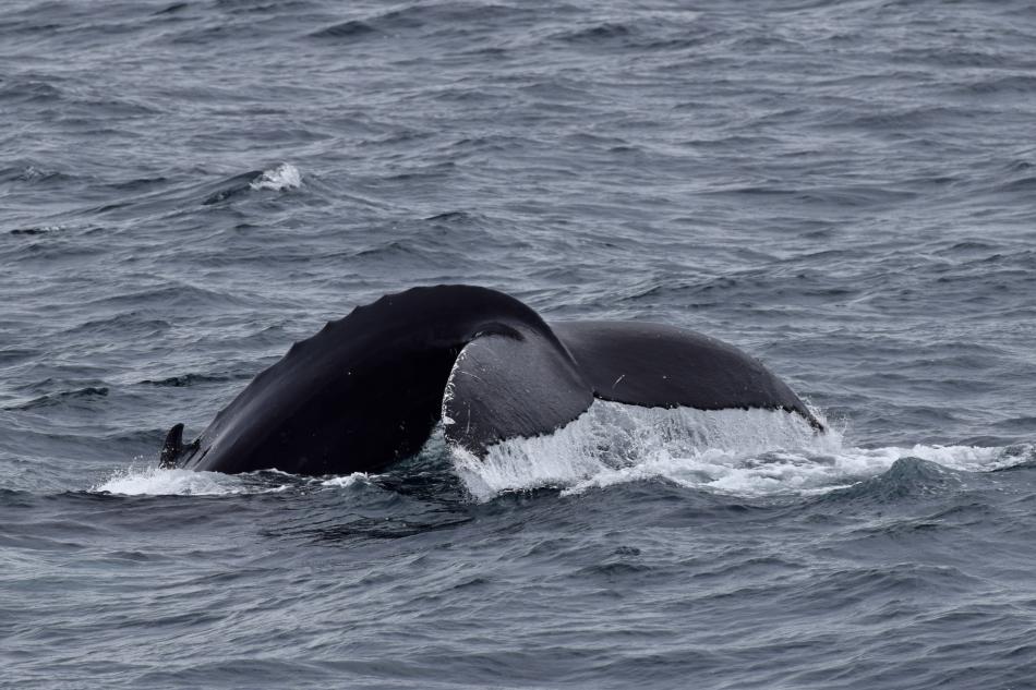 Report from Háfsulan: This afternoon we went out once again onto the bay. It was cloudy, but no rain and no wind, so very good conditions to spot whales and dolphins. After half an hour, we found our first humpback whale. In the beginning, it was very focused on feeding, so it was at the surface just a few seconds before going for deeper dives. However, every time it did it we could see its fluke. In the mean time, a minke whale passed by to say hi, but sadly didn't stay very long with us. Then, we were lucky enough to see the humpback doing some tail slapping. It was very cool! Not very far away from us, we saw a second humpback, this was a more relaxed individual and took some breaths on the surface before diving. After taking some pictures, we had to go back to port.