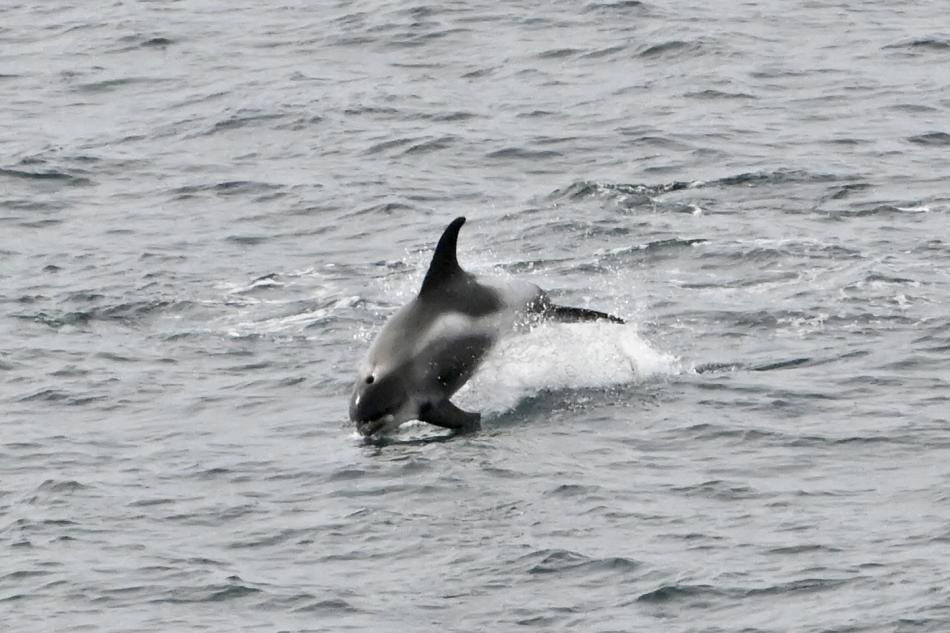 Report from Eldey: We left the harbour in almost perfect conditions for spotting cetaceans, mild wind, and parting cloud cover. Shortly after, we spotted the splashes of some harbour porpoises. They were traveling rather quickly, so we headed on into the bay. After a while, we spotted a large blow on the horizon, which led to our first humpback whale sighting of the tour! It was a very relaxed individual, taking frequent breaths, resting near the surface. It was even kind enough to demonstrate the whale pump process, by pooping near the surface between two breaths. We then moved on to another blow in the distance, our second humpback whale sighting. This whale was also very calm, but a bit more active, going for longer and deeper dives, showing us its beautiful fluke in the process. As we were admiring the whale, we spotted many big splashes off in the distance, so we headed there to investigate. It was 3 pods of white-beaked dolphins, which gave us quite a show! They were jumping, twisting, leaping in the air! There must have been a feast for them under the surface, as 3 distinct groups of 6-10 individuals were all in the same area, exhibiting the same acrobatic behaviours. As the dolphins began to calm down, we headed back towards the harbour, spotting 3-5 harbour porpoises along the way. What a great tour!