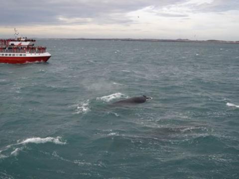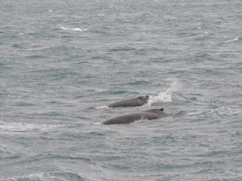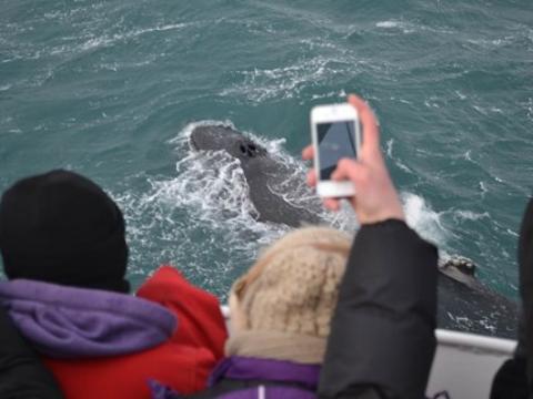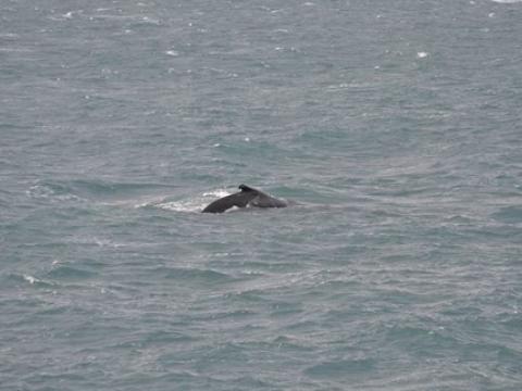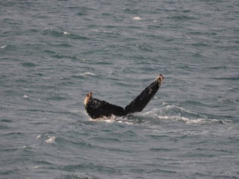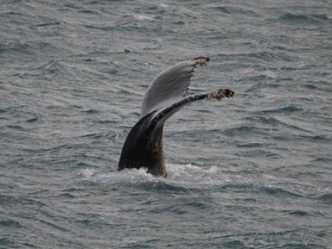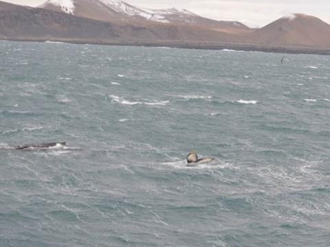 Report from Hafsúlan: We sailed from Grindavík in the morning and the omens were looking good, a successful tour the previous day put us in a good mood and some nice weather helped. Though it was windy the sea wasn´t too choppy and it was fairly comfortable for most of the tour. The best part of the tour though was the whales, we sailed west and after around an hour we spotted our first Humpback Whale. And it wasn´t the last whale we would see, during the tour we saw 4-5 whales! But that wasn´t the best part! That was what the whales were doing, they were performing every trick they seemed to know! One whale rolled over and threw both of it´s pectoral fins into the air, one whale was lunge feeding right at the surface of the water, they were all lifting their flukes into the air as they dived and the absolute best bit was when at the end of the tour one whale fully breached very near to the boat. It is the best thing you can possibly see with these whales and it left everyone stunned. It is a tour we will all remember, it was fantastic.