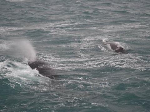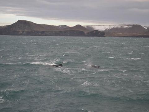 Report from Hafsúlan and Elding: After a very successful morning tour we knew exactly where to look in the afternoon, so after leaving Grindavík we immediately turned west and it didn´t take us long before we spotted our first Humpback Whale, at first there was a pair of whales. And after watching them for a short amount of time suddenly out of nowhere White-Beaked Dolphins appeared! They surfed the waves in between the two boats and then as quickly as they arrived they had left. And we just kept seeing whales, in total we must have seen at least 6 Humpbacks. And both boats got something extra, Hafsúlan had one whale spy-hop right in front of them and Elding one do a 360 degree roll just beside them. They were certainly in a very good mood today! It was an excellent tour with two different species giving us a show!