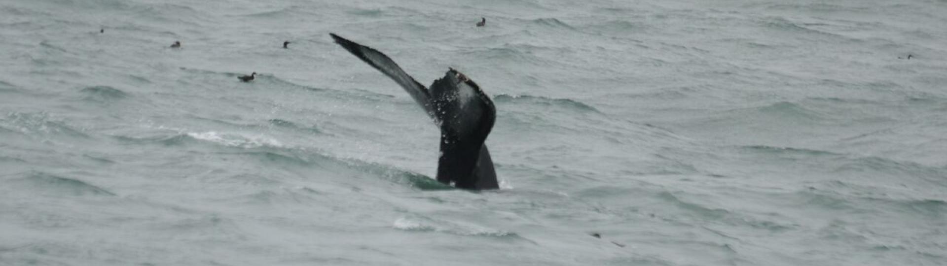 Report from Hafsúlan: We once more sailed out with the cloud cover at 100%. Some usual wind gusts and rocky sea conditions made this trip for a real Icelandic adventure. The animals were very shy on this tour, since it took us most of our allowed time on the sea to look for signs of life other than the birds. When we finally spotted a humpback whale from a distance we thought our luck has changed. No, it didn't happen. We waited for a very long time for this whale to come up, but it looks like it wanted to break the humpback world record in diving. Time ran up and we just had to turn back to the harbour. For this reason we gave our passengers the opportunity to come again for free.
