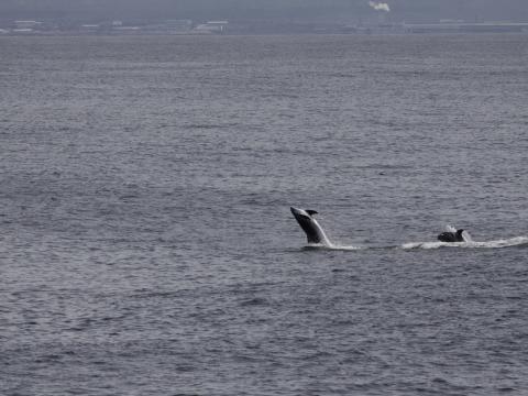 Report from Hafsúlan: An absolutely wonderful morning tour with sunshine and very weak winds. The sea condition when we left Reykjavik harbour was very good with almost no white caps and only some rolling waves from yesterday. After a little more than an hour of sailing we arrived at an area with 3 minke whales that were feeding. They gave us beautiful views, surfacing close to the boat on several occasions. Whales close to the boat, sunshine and no wind, more or less a perfect tour!