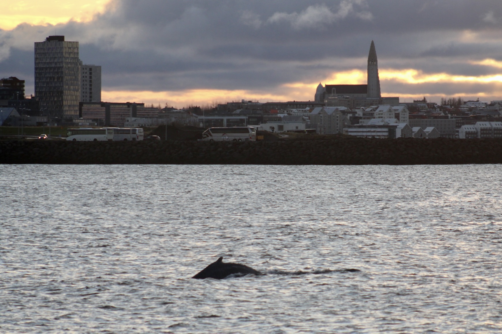 Report from Hafsúlan: The Icelandic winter weather gave us a taste of its phases this morning as we ventured into a rainy bay. We didn't have to travel far, as we spotted our first species right outside the harbour walls: a minke whale! The rain had cleared and the sun was peeking through the clouds, but this minke was quite quick and elusive, so we decided to travel a bit further. As we were nearing the islands, we passed by a small pod of 3-4 harbour porpoises! As we lost sight of the porpoises, a blow was spotted! And then, two blows! We arrived at Viðey to find a calm pair of humpback whales swimming side by side, whom we admired for some time before heading over to Engey. There, we found two more minke whales feeding and darting all around the place. We ended the tour with one final look at our humpback whale pair before making our way back to the harbour. What a fantastic start to the day!