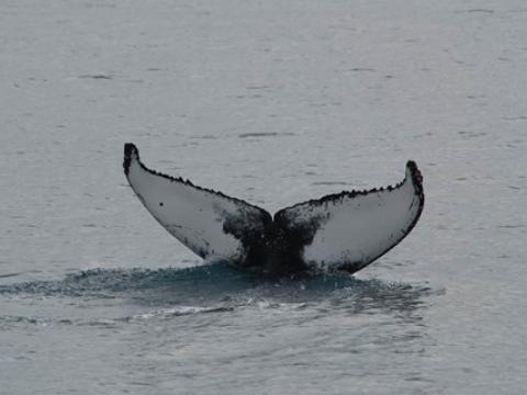 Report from Elding, Elding II and Skrúður: The weather today was absolutely perfect, the sea was still and the wind could barely be felt. The sun was shining too, it was actually warm today! Add the great weather to the four species we got to see this afternoon and we have a fantastic tour. The first species we saw was the Harbour Porpoises, normally the porpoises are very shy but these ones were very calm as they travelled slowly around the boats. Over the course of the tour we must have seen at least 100 porpoises, they were everywhere! The second species was the Minke Whale and once again we got a good look at this whale, surfacing close to us several times before eventually diving. Our other boats were in another spot with a Minke Whale named Humpie (has a dorsal fin like a humpback whale) that was first catalogued in 2011 and one of the main Minkes we encountered last summer. Species number three was the White-Beaked Dolphins, and just like the others we were able to get a great look at them as they were travelling slowly in the area being very calm. And our final species was the Humpback Whale, we were actually heading home when it suddenly appeared! And it was constantly diving and raising its big fluke high into the air when it dived, this was especially beautiful when the sun was reflecting off the body of the whale. A day of beauty and tranquility, and of fantastic sea life!