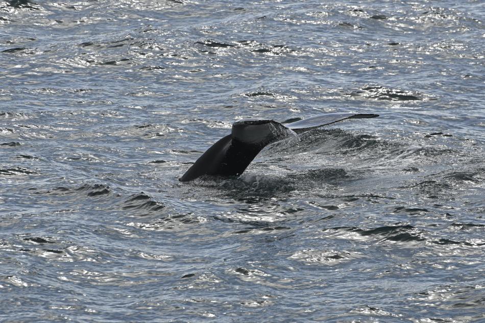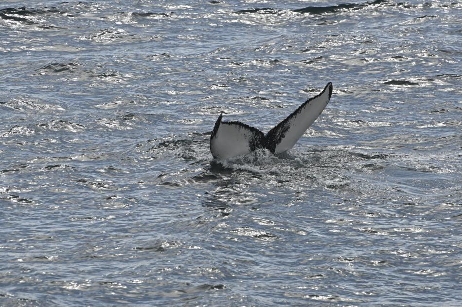 Report from Eldey: This afternoon we set off hoping for some better luck than the morning. We passed a few flocks of feeding seabirds giving us some hope but no cetaceans popped up nearby. Then just as our patience was being pushed to the limit, in the distance we saw a big blow. It took a bit of time to get closer as the animal was only surfacing twice before diving. Finally, we got closer and it was 100% worth the wait. This humpback whale surfaced really close to us a few times, showing us the big white pectoral fins. As well as going for some lovely fluke dives. It was amazing, then we headed home really happy :)