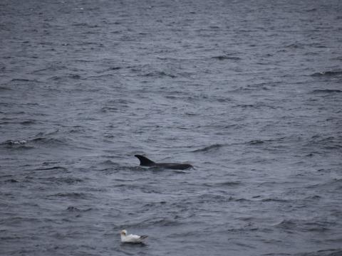 Report from Eldey: Weather conditions did not change much from the morning, so again we went out in high spirits. We sailed out with good visibility over the surrounding landscape and many different seabirds on our way out in the bay. Suddenly a pod of 4-5 white-beaked dolphins appeared really close to us. We managed to follow them for some time, some time they even jumped and leaped out of the water, until they decided to disappear. We went on further out in the bay getting a closer look at some hunting northern gannets as they are often a great indicator for some cetaceans feeding in the same area. Unfortunately this time we did not see any other species and had to head back to the harbour, were on the way we encountered another smaller pod (maybe 2-3) of dolphins. It was another lovely day out in the bay!