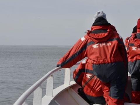 Report from Elding: In the afternoon, the weather was still very nice with blue sky, a gentle breeze and sunshine. So we sailed out of Reykjavik harbour on a calm sea and very good visibility. It took us only 20 minutes until we spotted a Minke Whale about 300 meters away from our boat. We got a bit closer, but decided to head further when it arched its back going for a deep dive. Then, the captain spotted a flock of feeding birds in the distance and we decided to go there and look out whether the birds were accompanied by whales. Indeed, we spotted a group of 3 to 5 Harbour Porpoises withing the flock of seabirds and just a few seconds later, another Minke Whale showed up to join the feeding.