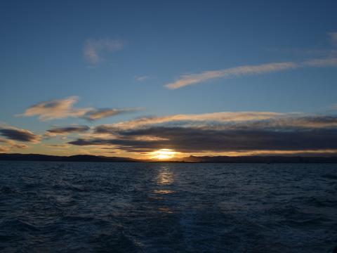 Report from Eldey: We sailed out under beautiful weather conditions this morning with the red sun rising and incredible colours around us. We went out pretty far, about 13 nm. We were already turning back when we spotted some dolphins ahead in front of us. We were soon surrounded by about 6-8 cheerful white-beaked dolphins. We spent some time with these mammals and were continuing our journey home. Most of the passengers were already inside the saloon, warming up a bit, when I suddenly heard "Big blow, 12 o'clock!" coming from my earpiece. We rushed forward and we managed to have some lovely encounters with two minke whales. This was a nice way to end this tour, gazing at the beauty of these gentle giants.