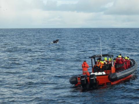 Report from Eldey: What an INCREDIBLE tour! Only a few minutes of leaving harbour we encountered our first cetaceans, a small pod of 2-3 harbour porpoises popped up, delighting us with their little forms. Further out into the bay we encountered a lovely minke whale and then up popped another one and they began feeding. These minkes not only surfaced very regularly and came up high out of the water but you could see them actively hunting. Lunging with their mouths wide open and then rolling onto their bellies, just incredible. After watching these animals for some time we headed off and found ourselves some white-beaked dolphins, this pod of 6 individuals delighted us by swimming right towards us. In the distance large blows were spotted accompanied by a few splashes. Once closer we could see these animals were humpback whales which were lunge feeding! Coming up with their mouths wide open! Just incredible to watch. Unfortunately, we couldn't stay too long with these amazing animals as time was running out. But the sightings did not end there, more minke whales and porpoises were spotted on the way back. A truly once in a lifetime tour!