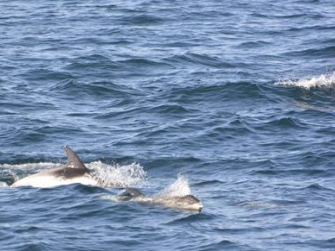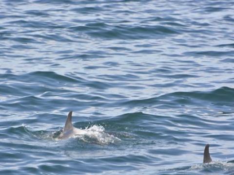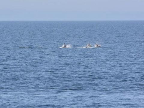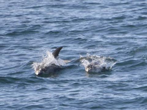 Report from Hafsúlan: We felt a bit of chilly wind as we left the harbour in search of cetaceans in the blue and golden sea. We first met 2 Minke Whales in the same area where we followed one of them for quite a while, observing it very well. Then we saw 2 pods of in total maximum 9 White-Beaked Dolphins ahead, some bow riding another vessel and others leaping and breaching high a bit further away. Splashes and bodies were easily visible in the distance but as we came closer, they approached us too, so we stayed with one pod which didn´t seem to be the same as the ones from the 13:00 tour, or at least we did not recognize any of them. We were very happy to have found interactive dolphins again, coming close. In between this sighting we could even smell a minke which we did´t pay enough attention to, as the dolphins were being curious about checking out the boat, speeding up along side and leaping. Also in this grouping we had young dolphins which were visibly smaller than the adults. A very good tour with impressive sightings where the dolphins could not have been closer.