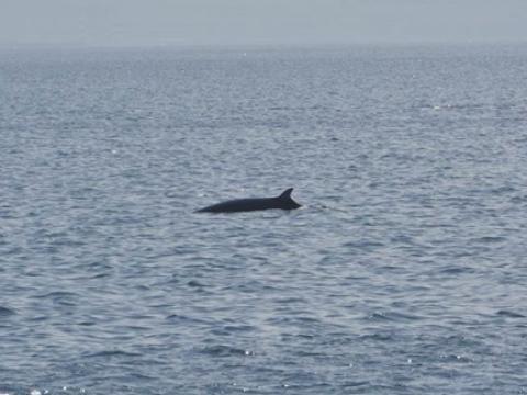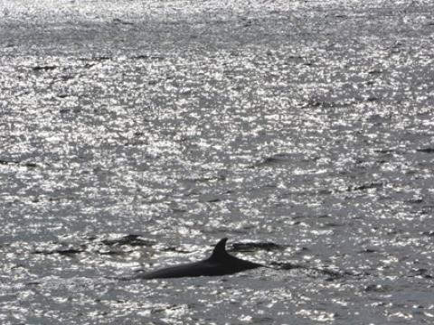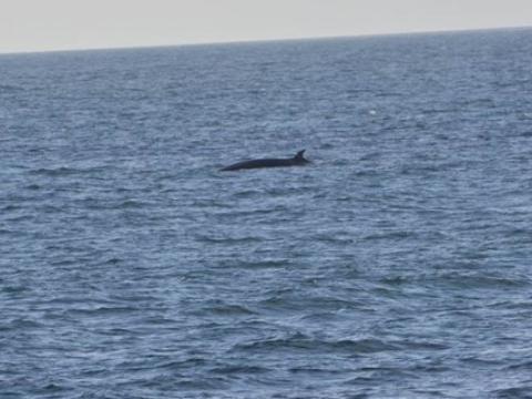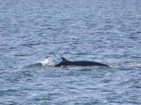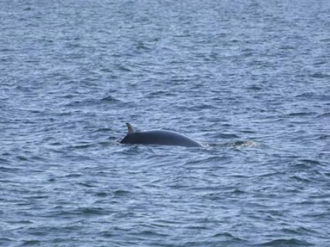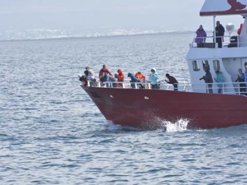 Report from Hafsúlan: What a difference from yesterday, very little wind, few clouds, blue calm sea and sunshine! Like this the spotting conditions were much nicer. We found the first of 3 Minke Whales which we observed properly, and there were no difficulties to find them again when they went for a dive and we were able to have several looks at them. One of them we recognized as "Teddy". We also got the chance to make out one of these whales with our noses. Smelling a stinky-minke is definitely not the best perfume but still a highlight as experiences with several senses go deeper and last longer. Having spent much time out there we were hoping to find some dolphins on the way back, but as they didn´t cross our way and we already prolonged our tour we had to head back and all in all there were 4-6 minkes appearing in Faxaflói.