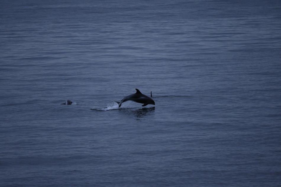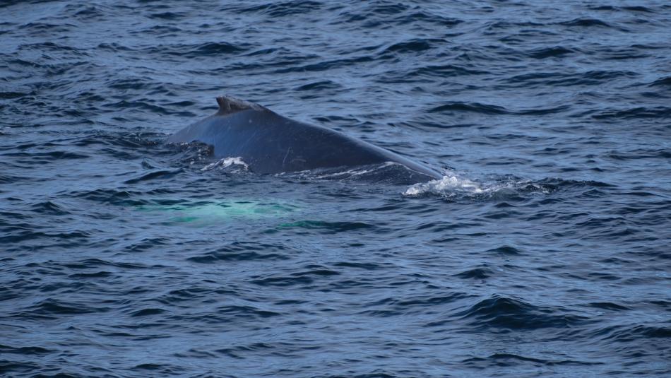 Report from Eldey: The seas were almost perfectly flat and the near-windless skies carried heavy clouds as we set sail this morning. After some searching around, we found a very large pod of 10-15 enthusiastic white-beaked dolphins. We witnessed them playing and jumping around us for quite some time and they even curiously approached the boat! As we eventually had to carry on, we stumbled upon a minke whale, which we got to see surface a multiple of times around us as well. But then, rumors of something bigger close by caught our attention. Lo' and behold, a humpback whale surfaced in the distance! This individual treated us to many beautiful fluke dives until we finally reached the end of our tour. At that point, we started sailing back towards port. However, not before we passed the same pod of dolphins again and to top it all off, we spotted 3 harbour porpoises crossing right in front of us! This concluded our morning tour with all 4 main species sighted. Great success!