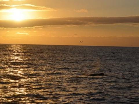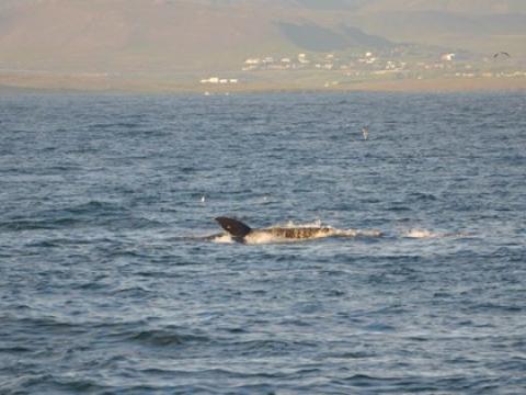 Report from Hafsúlan: What a tour. We headed out in very good conditions this evening with clam winds and the evening sun shining in the west. We began by visiting the puffins in Lundey and then started our search for the whales. We sailed further out into Faxaflói in what can only be described as near perfect conditions, the evening sun calm winds and mirror seas albeit a slight wave from the west. Pretty soon we saw some splashes from a flock of birds close to Akurey. We headed there, curious if there was a whale so close to land. Closer and closer we got until our suspicions were confirmed and we spotted our first cetacean of the tour a Humback Whale! We were immensly excited as this is always a fun whale to spot. It came up again and again in a huge flock of seabirds calmy feeding and rolling on the surface. This particular whale was very social coming up close to the boat and did not seem to mind our presence at all. We even spotted another humback close to the boat and even a Minke Whale to boot. All in all a fantastic tour, the midnight sun, humback and minke whales and calm conditions made for one of the best tours so far and a nice surprise considering todays rough start.
