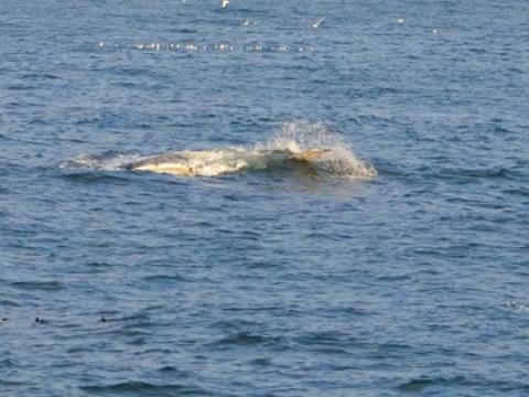 Report from Hafsúlan. We headed out and it was rather windy. We started by going to Akurey where we saw a lot of puffins. We had been sailing for about 40 minutes when our passengers spotted something. We stopped the boat and waited for it to resurface. All of a sudden a White-beaked Dolphin jumps right next to the boat. These were probably 3-4 animals and they jumped a couple of times before disappearing. We kept on sailing and saw a lot of seabirds, some in big flocks. Then we see a Minke Whale right in front of us. It only surfaced twice before going for a deep dive. We caught a glimpse of two more Minke Whales but unfortunetaly we didn't see them to close. A very good tour in spite of the rough seas.