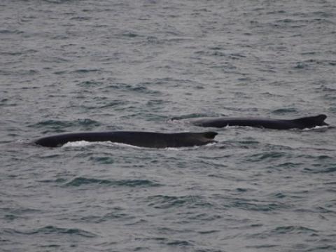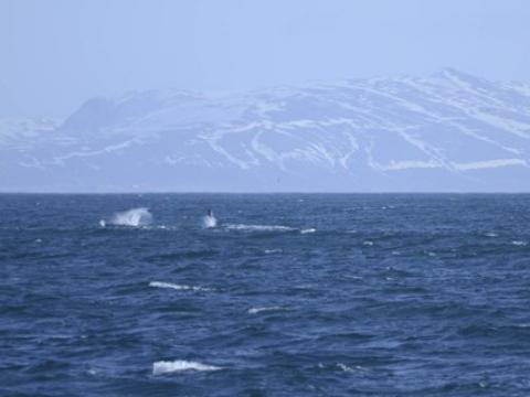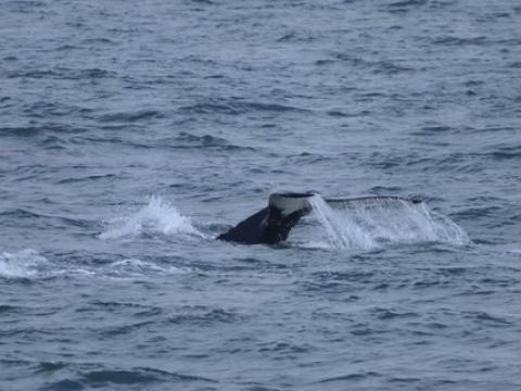 Report from Hafsúlan: Sailed out in beautiful weather but relatively high swells this morning. The first half of the tour was not so bad as we headed with the wind and everyone enjoyed the warm sun on their faces. We first saw a Minke Whale when came up a couple of times but travelling fast and very hard to track, a little later another  one was seen but again quite difficult to follow. It wasn´t until 1 1/2 about of sailing that a Minke Whale surfaced just 10-20 from us, those that were determined and whom stayed outside got a great look but other were down stairs getting a nice warm drink. It did come up again which was nice. On the way back to the harbour a large pod of White-beaked Dolphins were spotted leaping and surfacing fast. Always incredible to see. Great wildlife in wonderful weather.