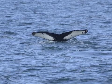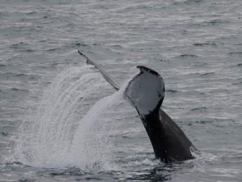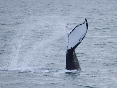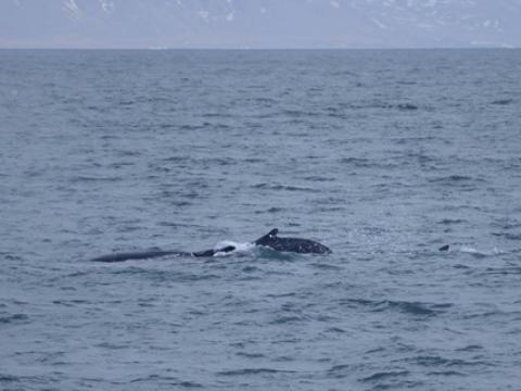 Report from Hafsúlan: This afternoon, due to the swell, we decided to head to where we were yesterday hoping the sea conditions would be better there. On the way there we spotted a Minke Whale but always quite far away and surfacing again always randomly as it constantly changed direction. We left it in peace and sailed some more. our passengers then found a small pod of White-beaked Dolphins (3-5 i would say in total). We enjoyed their company for a while until we got word from an other whale watching boat about splashes in the distance. Once in the area we found ourselves surrounded by White-beaked Dolphins (20-30 maybe more) and 4 Humpback Whales, three travelling together and one solitary one which we later identified as Johnny Gash, a humpback with a massive gash taken out of it near the blowhole last seen on the 9th March and before that in Skjálfandi Bay in the North in 2007. The three that were travelling together split and one decided to separate and do a big breach from us which was incredible. It is always nice to see wonderful natural behaviours from wild animals. Just incredible day.