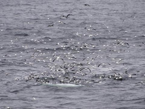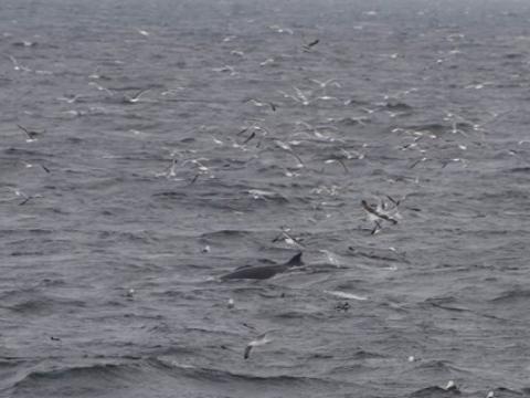 Report from Hafúslan and Elding: When we headed out into the bay this morning the sky was overcast, but there was no rain in sight. Unfortunately the humpback whales we had seen the night before had moved away from the city and were nowhere to be found. But following a flock of feeding birds we did manage to find a great feeding area - or so it seemed. There must have been around 4-6 Minke Whales all around us. Some of them surfaced very close to the boats and gave us nice looks at some of their feeding behaviours. Others were traveling a bit faster further off in the distance. We traveled alongside one of them on our way back to Reykjavik until we had to head back and the whale turned in the other direction again. All throughout the trip we repeatedly saw scattered Harbour Porpoises (around 15 in total), some of which came surprisingly close to the boat. All in all quite a successful tour!