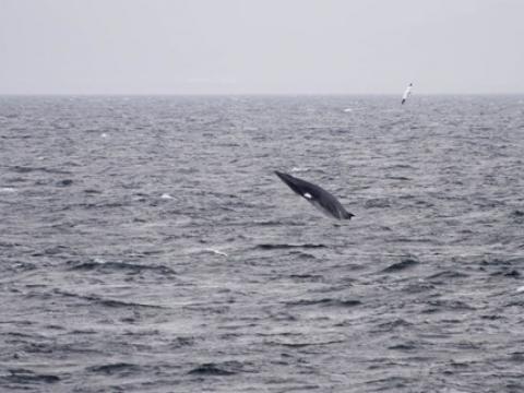 Report from Hafsúlan: The wind had picked up a bit more in the afternoon and the sea was a bit choppy as we headed out again. But this tour rewarded us for the roller coaster ride! Again, it was the birds that gave us the most important clue on where to find the whales. There were 2 Minke Whales feeding with the birds and as we followed one of them a bit further we discovered quite a treat! In the distance there was another minke - breaching time and time again! We moved closer towards it and enjoyed what must have been well over 20 breaches in total! Sometimes it seemed as if the whale had to take a break and gather some more strength before the show went on again. We watched the same individual for over 15 minutes, just enjoying the amazing performance. Again, we crossed the path of some scattered Harbour Porpoises over the trip (around 10 in total). Because we had headed quite far out it was then time to start sailing back. But on the way we found another 2 minkes which we watched for a while before returning to Reykjavík. What an unbelievable afternoon!!
