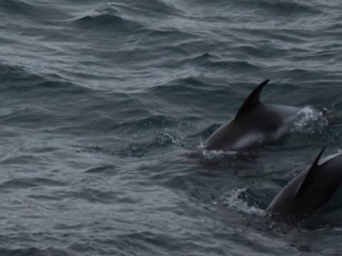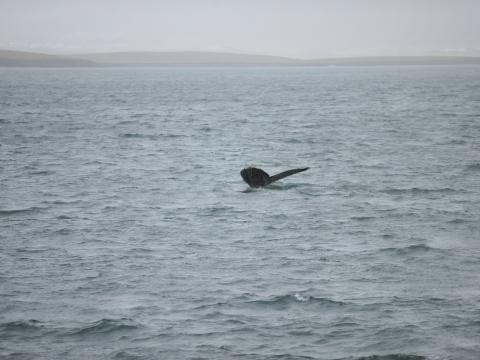Report from Eldey and Hafsulan: Looking at the water from land it was a welcomed surprise by how good the visibility actually was once on the water. Even better that we went out with two of our boats today. Not just for the weather, which was warm and actually raining much less then the forecast had led us to believe, but mostly for the wildlife. There was so much to see today! And so close to land too. Both of our boats sailed out past the island Viðey and towards the island Lundey, where we knew a humpback whale had been seen yesterday. On our search we were greeted by a flock of numerous bird species feeding, together with at least 3 harbour porpoises and even a harbour seal poking it's head out of the water to see what's going on. Northern gannets were diving into the water to catch fish so we were certain we were in a very good area. Which was quickly confirmed as we spotted the blow of a humpback whale. We assumed it was the same individual we had seen just two days ago. However, after this one lifted it's fluke, so it's tail, out of the water we could tell it is a different one. Wonderful how many of them have been coming into the bay this winter. After staying with this whale for an hour, we left it to keep feeding on it's own and tried our luck to find hopefully another species. Which didn't take even 5 minutes! Only they found us. A wonderful pod of 8-9 white-beaked dolphins, including a calf, playing around us. They kept diving under the boat, making us all walk from one side to the other, performed bow-riding and a few jumps right in front of both our boats. This was an absolutely wonderful and wildlife filled tour and a day where I just wish the sun wouldn't set so we could stay on the water for many more hours.