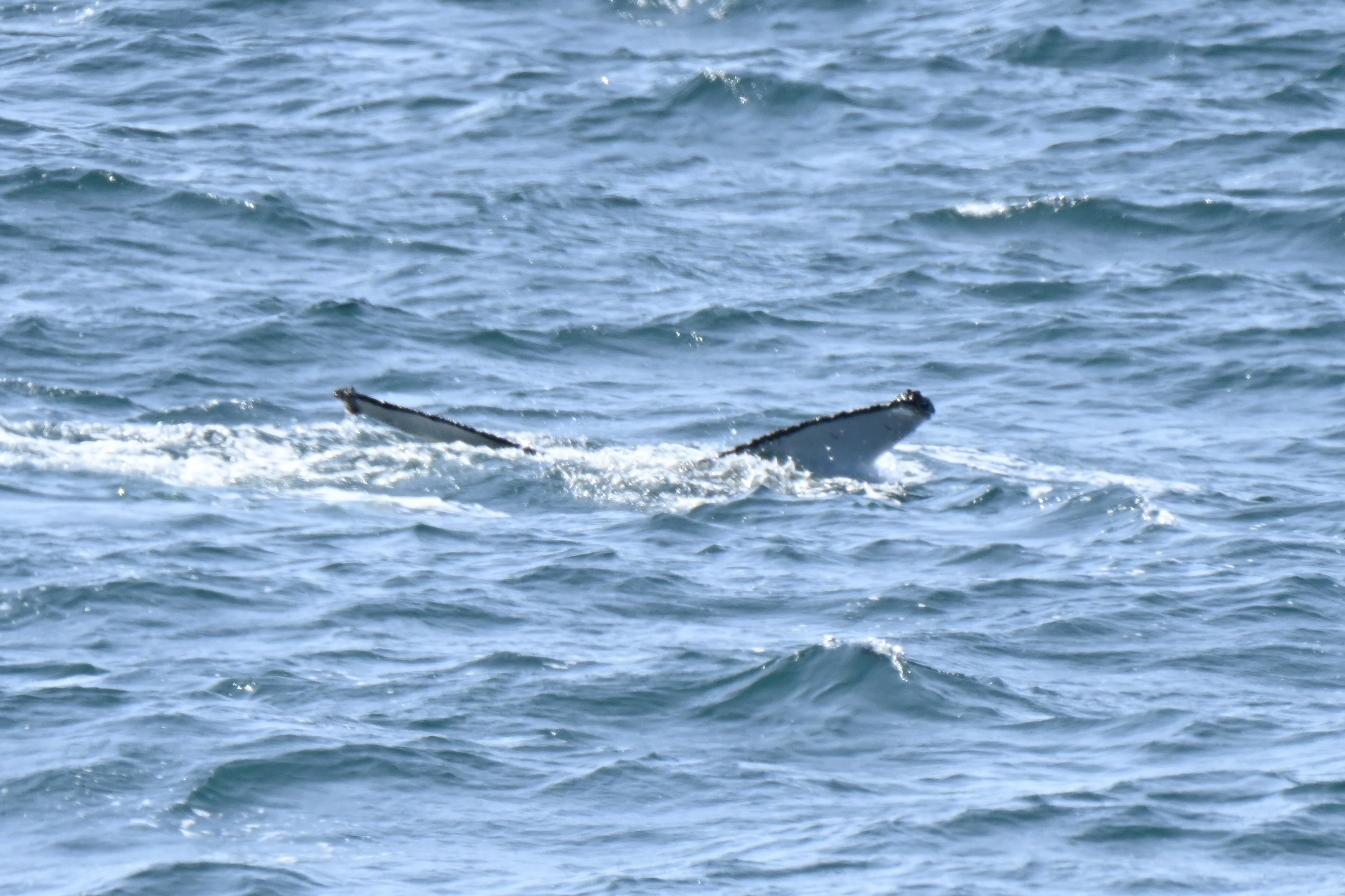 Report from Eldey: This morning was sunny but a strong northern wind cooled us down quite a bit. The tour took us far out into the bay in search of marine mammals but our patience and valiance was eventually rewarded with a humpback whale! We got to see multiple fluke dives and a pec slap from this individual as it seemed to be feeding in the area. After some time with this whale, we started heading back home and right after we set off we could see it tail-slapping in the distance. What a great encounter!
