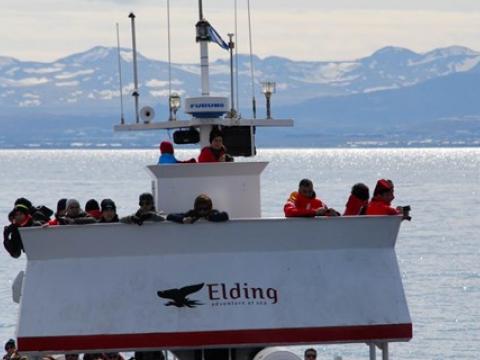 Report from Elding II and Skruður: It was a very busy morning for us here with Elding, we have large private parties joining us for whale watching and sea angling so we took our scheduled whale watching tour on our smaller boats. We sailed out on wonderful sea conditions, a little choppy at the start but the sea turned to glass later on. It all looked very promising as the birdlife was both abundant and rich.Soon enough we had harbour porpoises popping up here and there and Minke Whales too. At first we followed one minke whale that was going for about 10 minute dives and had to be very patient but later in the tour we found an area with diving gannets and other seabirds and about 3-5 Minke Whales and possibly more in the distance, They seemed to be feeding as they started to surface more quickly and more frequently. Our passengers got a great look in the end. Porpoises were great too seeing 5-7 small pods of 2-3 animals in each encountered here and there throughout the tour.