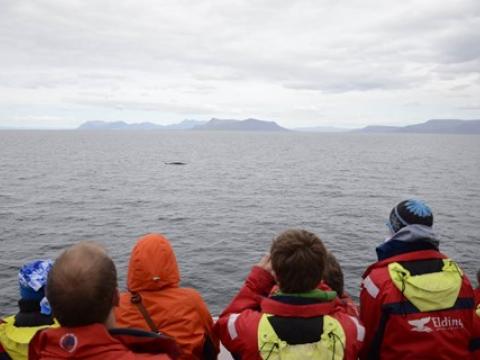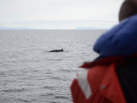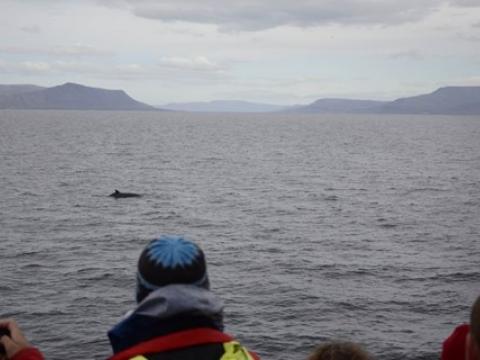 Tour at 10:00Report from Elding: on this tour we had a total of 3 minke whales, one of which our researcher Jonathan managed to identify as 'Cici' (a minke whale new to the catalogue and seen a couple of times this year). All were seen in one area, which had abundance of food according to the onboard fishfinder, hence the presence of the whales as well as the great number of birds such as Northern Gannets (at one time 10 were seen flying in one line above us, a spectacular sight indeed) and Manx' Shearwaters. We also saw at least 3 individual harbour porpoises but only for a moment each one.