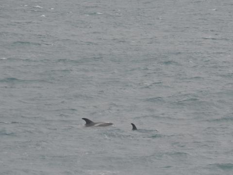 Report from Hafsúlan: wind was blowing more strongly then in the afternoon and the swells were also getting a bit higher. We sailed west along Reykjanes peninsula to stay in calmer sea then further from land. It rained and hailed on us on the way out but when we got closer to Keflavík it cleared up. There we slowed down to search more carefully around us because this has been a good area for minke whales lately. After a little while we spotted 5-6 harbor porpoises, they were not as easy to follow like in the morning tour but we still were able watch them for a while. soon after we left the porpoises a minke whale surfaced within 100 meters in front of the boat! It surfaced three times very close to us before it went for a deeper dive we spotted it next about 200 meters away from us and were able to see it coming up for air 4-5 times before it vanished. On the way back to land we spotted a blow in a great distance we traveled towards it and saw another blow. This was clearly a big animal but sadly we were never able to get a better look at it.
