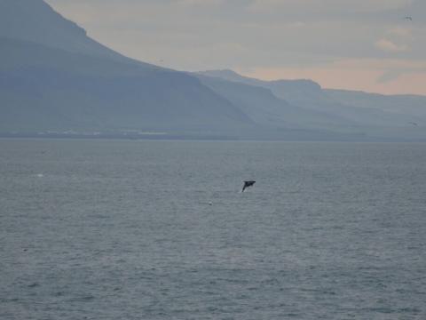 Report from Elding: We headed out sailing west in a little bit of wind and swells on this midnight tour. After 30 minutes of sailing we had our first encounter with cetaceans. A single harbour porpoise joined us and bow-rided us for a short while, giving us short but great views of this otherwise elusive species. We had just lost the porpoise when a minke whale surfaced right infront of us. The whale continued on its course giving us good views as it traveled away. We got information of more minke whales further out in the bay by another whale watching boat. We didn´t go far before we were lucky to encounter jumping white-beaked dolphins! We soon got surrounded by dolphins and it was several pods with at least more than 30 individuals all together during the tour. After some traveling we saw a huge splash in the distance only meaning one thing, a jumping whale! We hurried to get closer but unfortunately we couldn't´t find the whale, that must have been a humpback whale... We had time to check out one area with many birds before we had to start heading back.