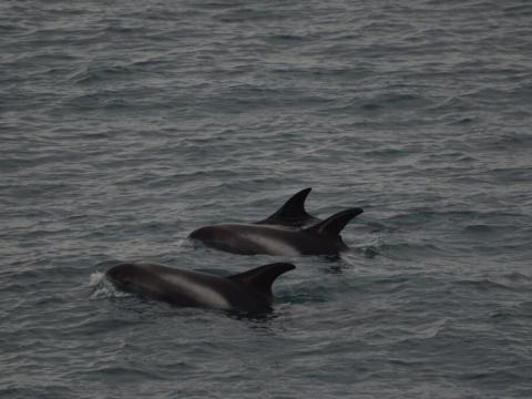 Report from Hafsúlan: The wind had picked up from earlier in the day and we had a few whitecaps on the surface as we made our way out in to the bay. This meant spotting was going to be a little more diffucult. After about 25 minutes we spotted our first of 5 minke whales, which was a very shy individual. We waited for two more surfaces before moving on to find a less timid individual. Suddenly in the distance we saw rather large splashes about 3 km away so we steamed in that direction. However as we steamed in that direction a minke whales surfaced only 150metres from the boat. Again we stopped and again this minke was elusive. We moved towards a large shoal of fish that had birds diving in to it. We spotted several more minkes, We also had some lovely sights of 5 sleepy white beaked dolphins that hung out near the surface. After a few more sightings we had to turn back towards Reykjavik.