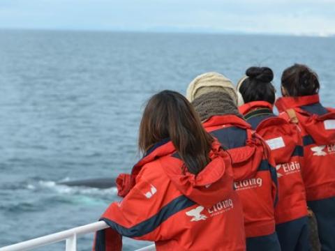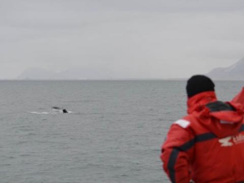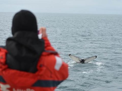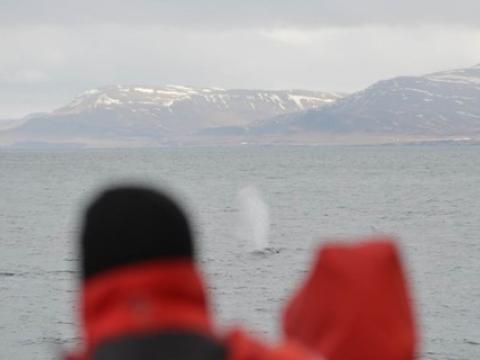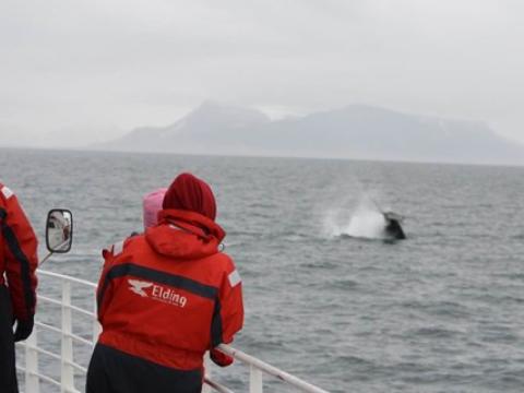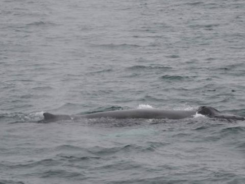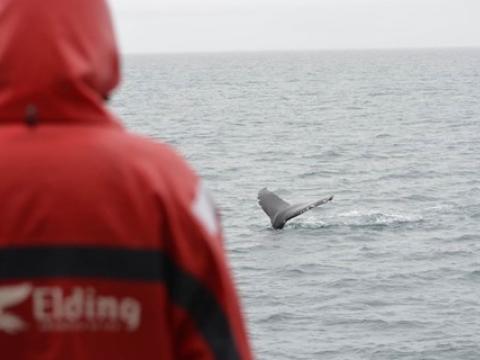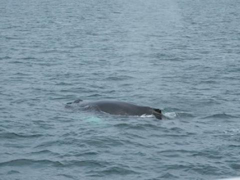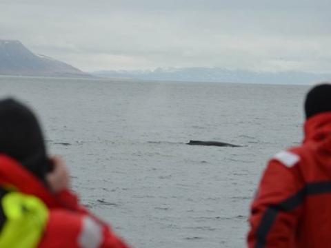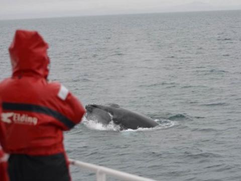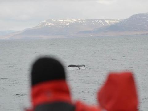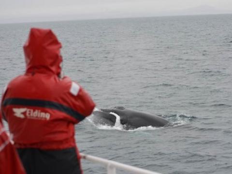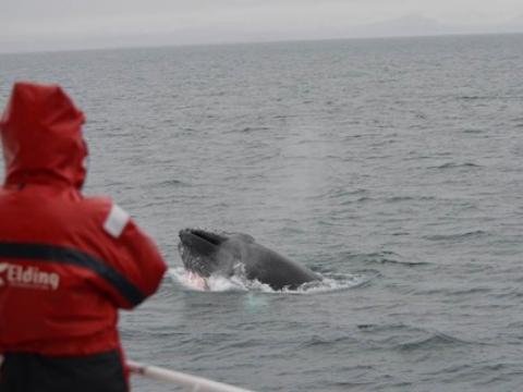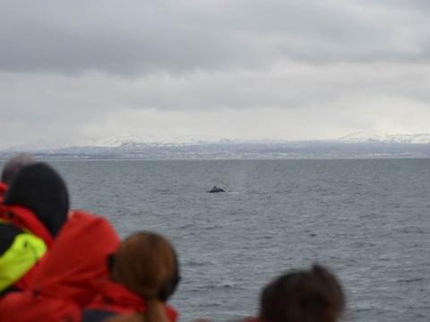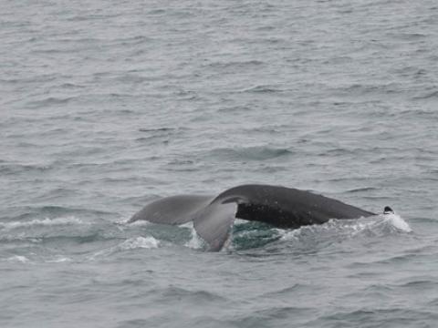 Report from Hafsúlan: After a short sailing on this cloudy day we spotted two Minke whales swimming in the bay. They surfaced briefly but a couple of times they came quite high out of the water. We didn't stay with them for very long since they seemed to be in a rush to get some where else. We did get a good look, though, and were delighted with this short encounter. When we left the minkes we saw a blow further away so we decided to sail closer to see where it came from. When we reached the souce of the blow we saw that it belonged to a very busy Humpback whale. This was the same whale that was seen on yesterday's tour and it was there lunge feeding, spy hopping, rolling around and raising it's fluke over and over again. We shut of the engines of the boat and watched as the whale surfaced right beside us while circling the boat. It showed it's belly number of times and every one got a very good look. We knew of another humpback whale not far from this one so we had a quick look at that whale as well before we sailed back to Reykjavík harbour after an amazing tour.