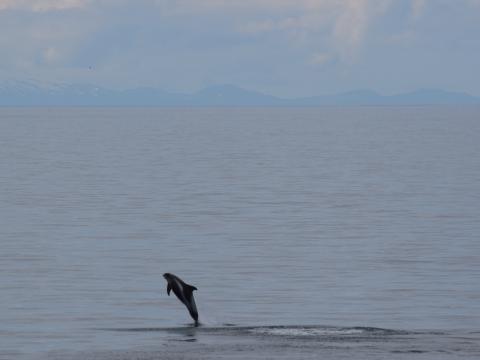Report from Eldey: The ocean calmness peaked on our tour, here we could have a clear example of a mirror-like sea. We even were treated with some nice lights, making the landscape dreamy ! The first cetacean we encountered was a minke whale. We could have few glimpses from far away but when we tried to get closed it proved to be quite elusive, taking long deep dives and surfacing far away from us, so we decided to leave it and try to look for something else. We then encountered our first pod of white-beaked dolphins. The dolphins were spotted leaping out of the water from far away, and when we finally got close they had calmed down and were surfacing gently around us. We could have satisfying looks at them, and as they were other boats with us present with this pod, we decided to try our luck further away. We went really far away out in the bay, still attracted by the flat sea and the lights shining on the back ground. In our errand, we could witness many birds, including an impressive number of razorbills and atlantic puffins. We came across two other minke whales but they were also very difficult, we could sight each of them a couple of time but not much luck with the baleen whales on this tour. The stars were definitely the dolphins, we found two other pods and could see more actions as leaping and feeding behaviours, and we even saw some juveniles ! On our way back, we could have quite close looks at harbour porpoises, as we met an adventurous pod close to our boat.