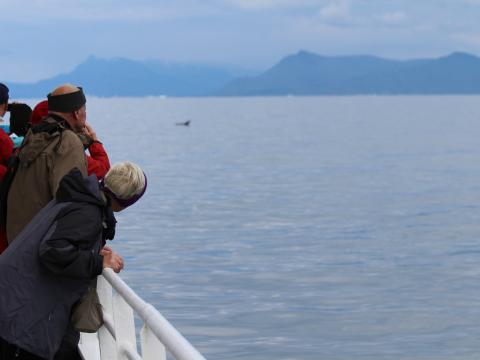 Report from Elding: A typical Monday morning we all probably wake up with tired eyes after a long weekend. Best way to wake up is definitely to go out in Faxafloi enjoying the fresh breeze of the North Atlantic. This tour started of very good with seeing an old friend , the minke whale Háski. He was the most frequently seen minke whale last season and he became popular among the passengers on this tour as well. Next species of the tour was the white-beaked dolphin. We came close to a pod of 4-6 individuals and after following them for a couple minutes they turned around and swam straight towards us, swimming just under the bow. The sea was almost flat so it was really easy to see their white beaks and white patches on the body. But they didn't hang around for a longer time after that so we left them in peace and searched for other animals. We were lucky and came across a third species, a humpback whale! It was a photogenic whale, always bringing up its fluke when it went for a deeper dive and didn't stay underneath the surface for more than 4 minutes. You couldn't ask for more in this beutiful Monday morning out at sea. What a great start of the week!