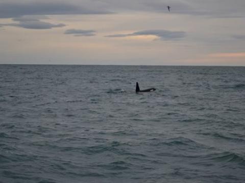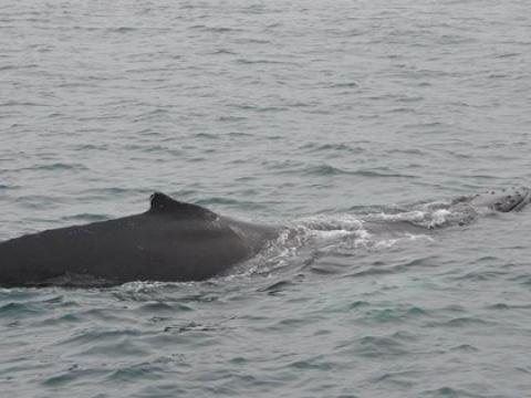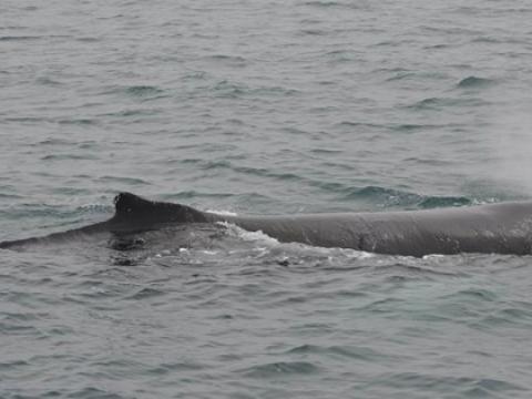 Report from Elding: In the evening, the wind had picked up and the sea got a bit rough. We shortly stopped at Akurey to see the Atlantic Puffins which were sitting on the rocks of the island in large numbers. Then, we headed out further to see some whales out in faxa bay! However, the rough water surface made it quite difficult for us to spot cetaceans. Here and there passengers shortly spotted something, but we were not able to see it twice. Suddenly, a Minke Whale surfaced just about 5 meters from our boat, but disappeared as fast as it had shown up. But there it was, a big blow in the distance...and again! this time also a black back was visible in about one kilometer distance. Was it...yes it was! a Humback Whale! As we came closer there was no doubt about it anymore. The whale seemed to rest, lingering motionless head down and fluke up enabling us to thoroughly observe this impressive animal. It even surprised us with strong fluke flaps on the water surface, maybe a sign that it wanted to be on its own? We could not tell as noone on board was speaking the humpback language...However, we had spent plenty of time with the humpback so we decided to leave it on its own getting its well deserved sleep - Hope to see you tomorrow my dear fellow!