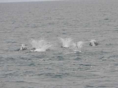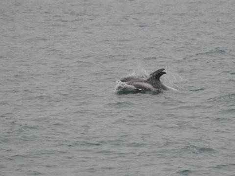Report from Elding: This afternoon, we started sailing under relatively calm conditions and even though the sky was a bit overkast, the sun was shining through here and there. On our way out, we stopped at the puffin island Akurey, where we enjoyed watching the Atlantic Puffins. The tide was very high and we were able to get very close to the island. When we continued our journey, it did only take us about 20 minutes until we spotted two Minke Whales in about 200 meter distance. We git closer and had a very nice view on these baleen whales. One was surface feeding several times and surprised us with splashes. As we traveled further, we saw splashes in about a kilometer distance. When we got closer, we found a group of White-beaked Dolphins traveling fast and jumping in between. They were heading towards a big flock of feeding seabirds including the large Northern Gannets that were diving within the flock. We thoroughlz enjoyed watching the dolphins feeding and a couple of Minke Whales that surfaced in between once. The cherry on the cake was a resting Humpback Whale that we spotted when we were already on our way back to Reykjavik. We stayed as long as we could and were at least able to see it surfacing a couple of times before we had to go back to Reykjaviks harbour.
