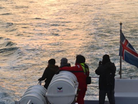 Report from Hafsúlan: We heading out today on a beautiful whale watching tour in gorgeous wintery sun conditions. First heading north towards Akranes and then towards the Reykjanes. There was a beautiful winter's sun shining over the stunning snow capped landscape.