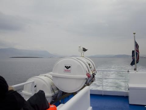 Report from Elding: beautiful calm sea, clouds at the beginning but sunny at the end of the tour. Very nice tour with two close minke whales and 1 more further in the distance and awesome pods of harbour porpoises again! We had a nice visitor onboard standing on one of the white life rafts' container, a lesser black backed gull was resting on our boat for a while and looked at us just chilling. Today was really an exceptionnal day for porpoises watching which came so close to the boat on several occasions and even towards us on the left side going under the boat that we could see their beautiful brown bodies just under the surface. The second minke whale we saw longer was easy to follow and didnt dive for long in between two surfacing behaviours. We saw the puffins on Engey at the end since they were none of them on akurey at the beginning.
