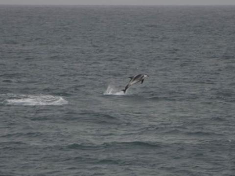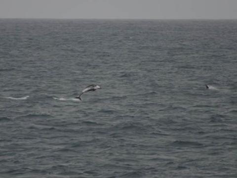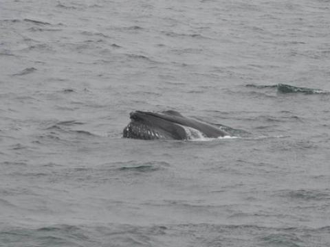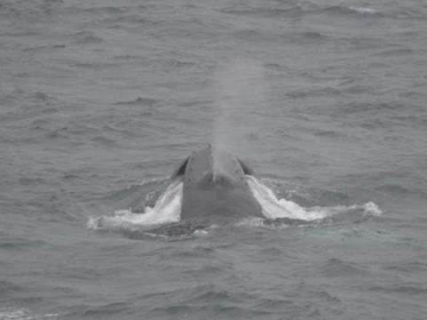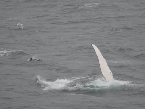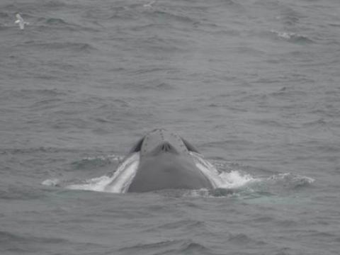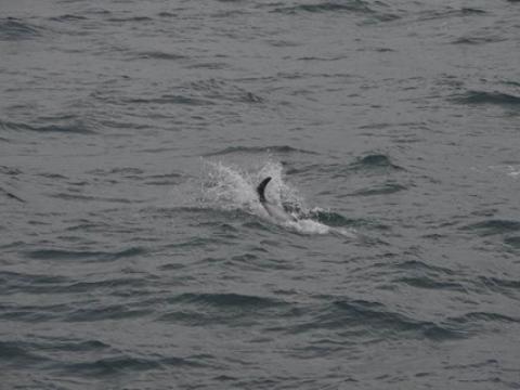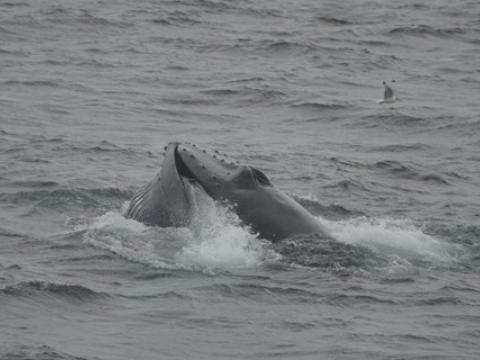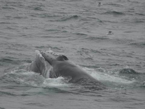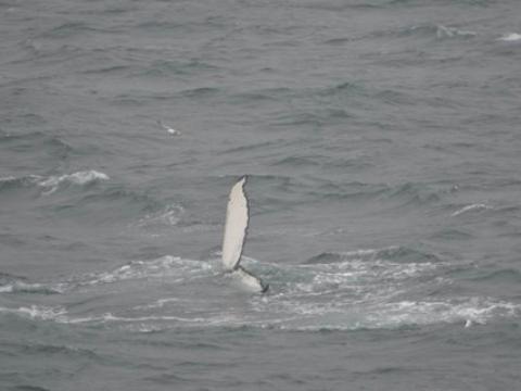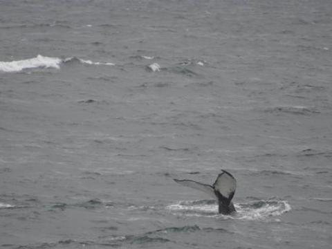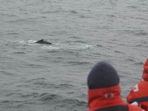 Report from Hafsúlan and Elding: In the afternoon the weather had still not improved a lot, but we still had a lot of courageous passengers accompany us on the two boats in the afternoon! And they were rewarded with some great looks at a Humpback Whale we encountered after about 45 minutes of sailing. It surfaced very close to the boat on different occasions and gave us some beautiful looks at the bright white underside of its fluke. And while we were rolling around in the waves waiting for it to surface again, it breached right next to the front of our boat. It produced a huge splash that almost showered the boat - it was that close!! Unfortunately, not many of us were looking at the right spot when the whale jumped out of the water - but a lucky few were fortunate enough. What a tour!